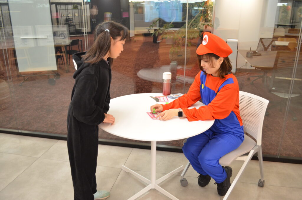 core塩尻はオリジナルイベントとして「絵合わせチャレンジコーナー」を同時開催しました。大きなモニターに映し出されたカードに触れて、同じ絵柄を揃えるとお菓子をGET!小さいお子様にも楽しんでいただけました♪